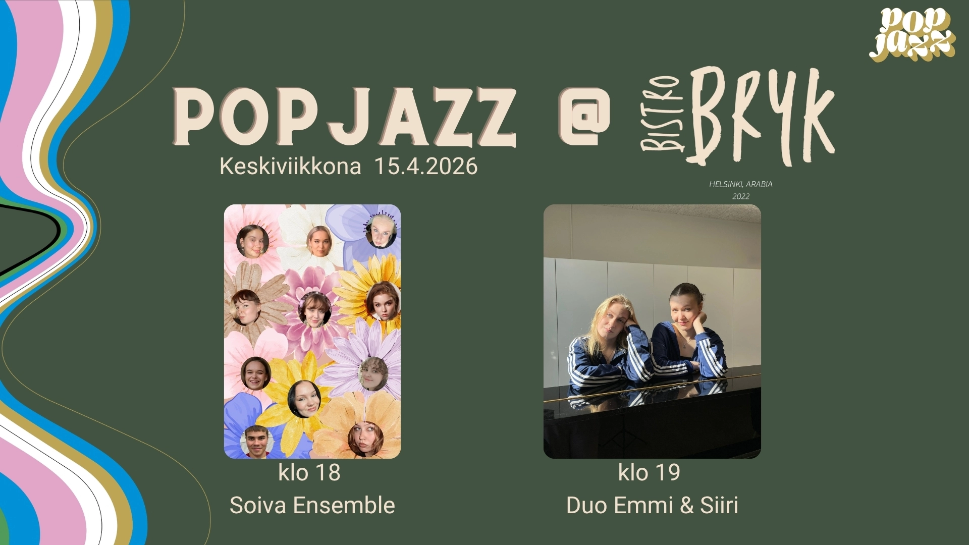 Bistro Brykin tunnelmalliset musiikki-illat kutsuvat sinut kuuntelemaan Pop & Jazz Konservatorion ammattiopiskelijoiden duo- ja triotyöpajan satoa. |